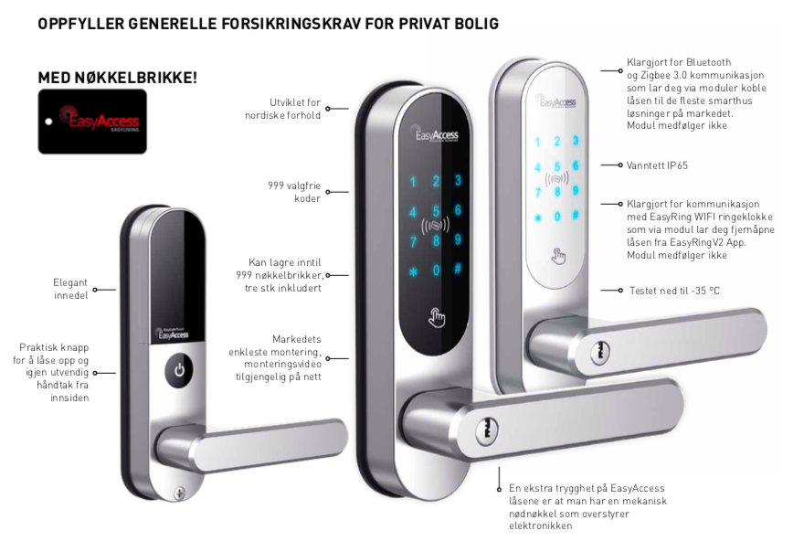 Nødnøkkelløsningen gjør at låsen kan åpnes uten elektronikk ved behov.